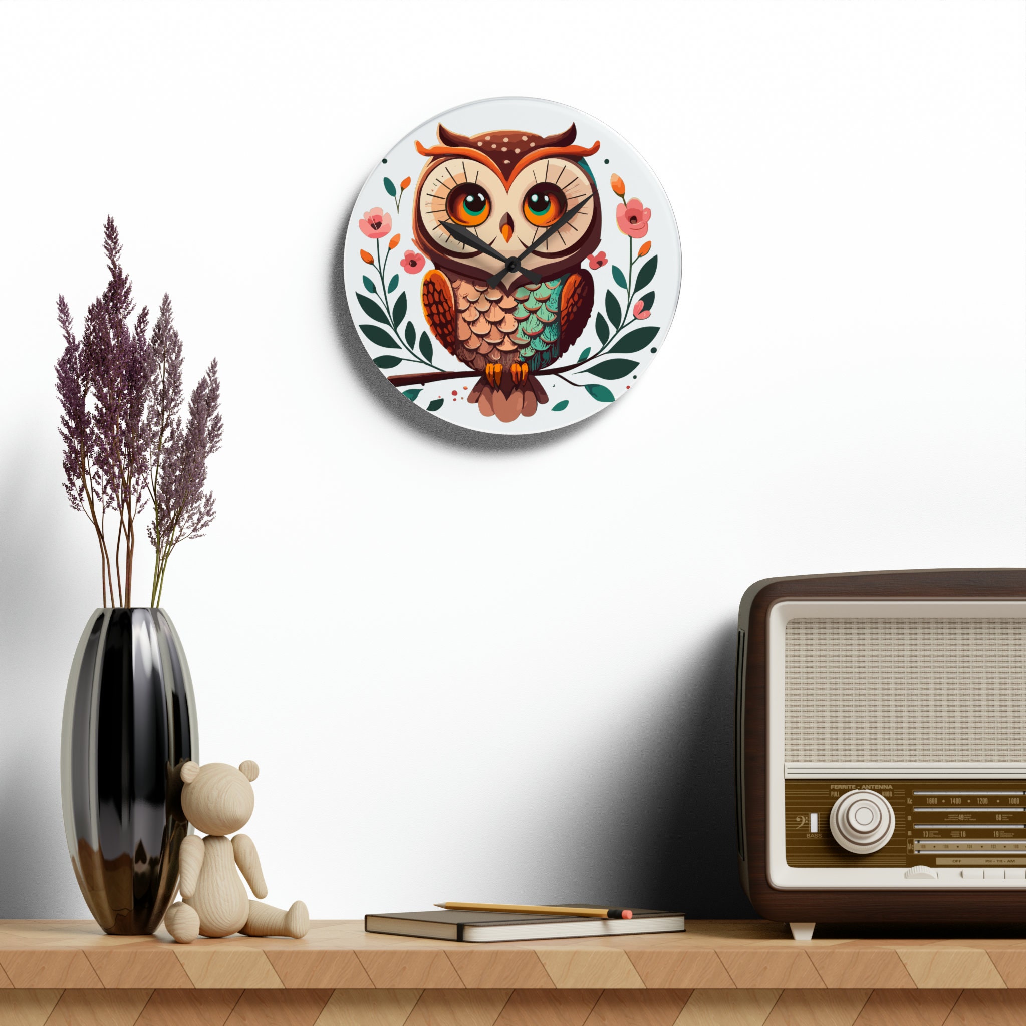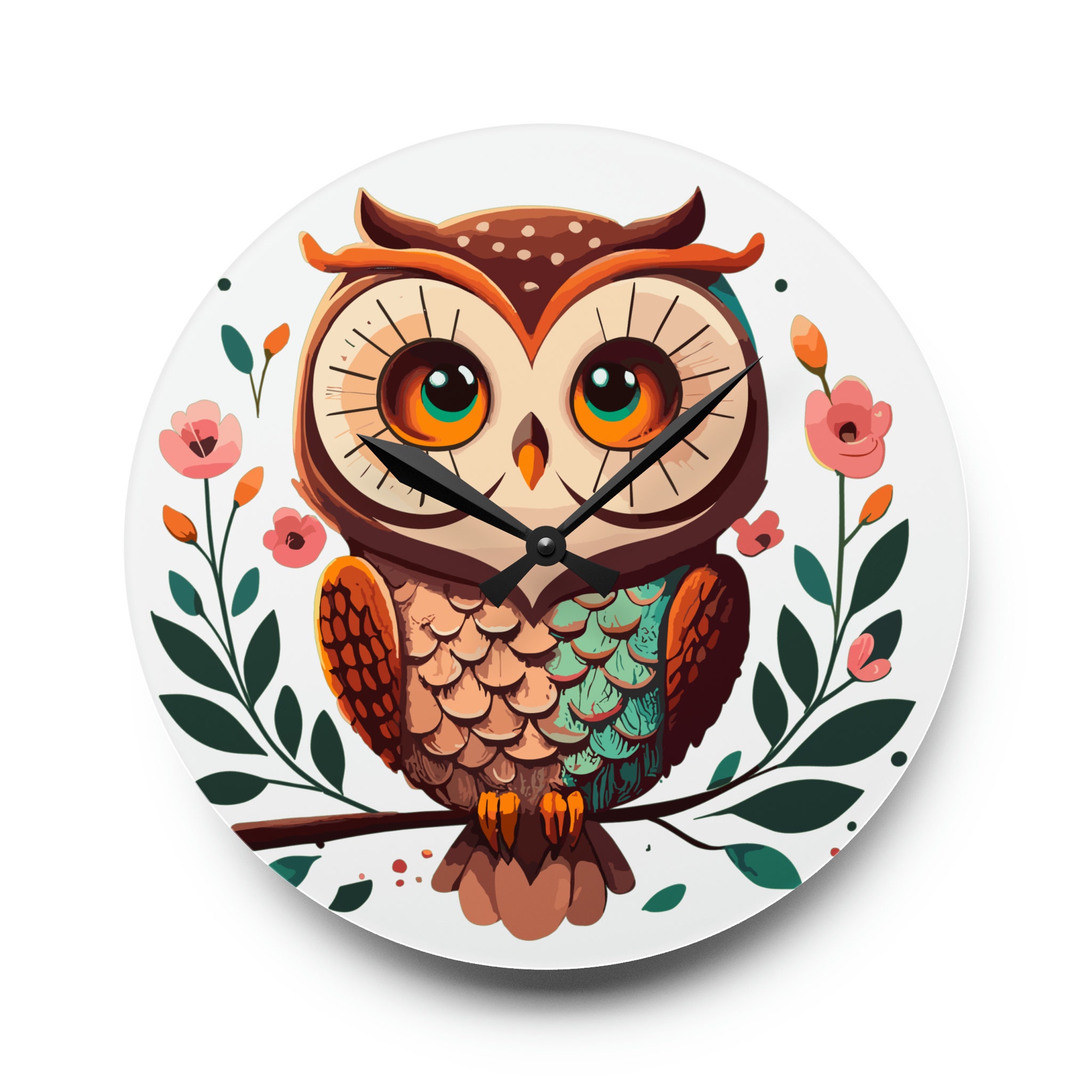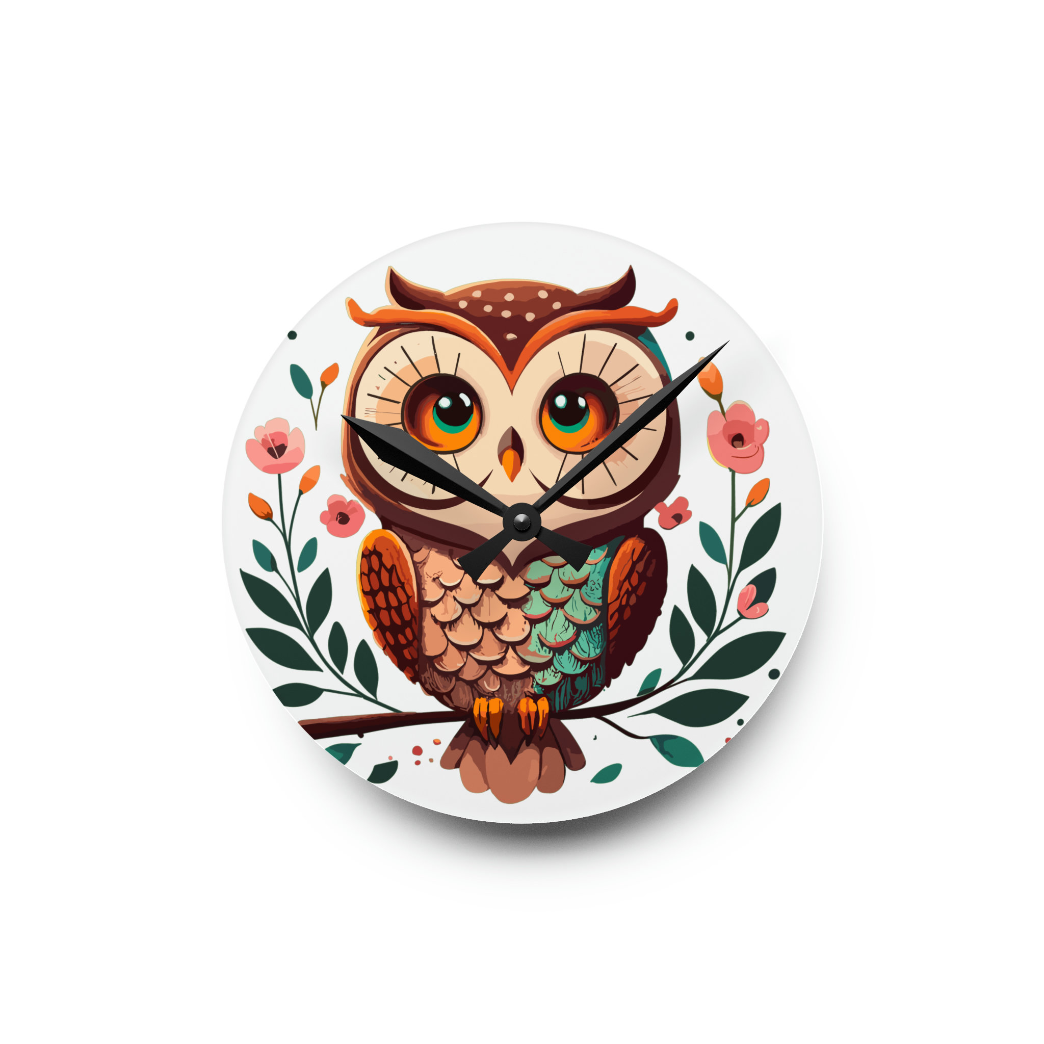 Introducing our Cutest Colorful Owl Clock, the perfect addition to any nursery room or kids bedroom. Made from durable acrylic, this wall clock not only adds a touch of charm to the space, but also teaches your little ones how to tell time. The vibrant colors and adorable owl design make this clock a delightful piece of decoration. It's also a great gift for owl lovers of all ages. Enhance your child's room with this cute owl clock and watch their imagination soar!