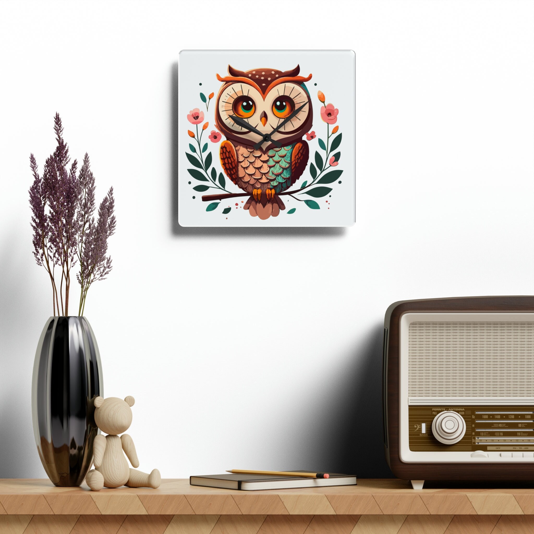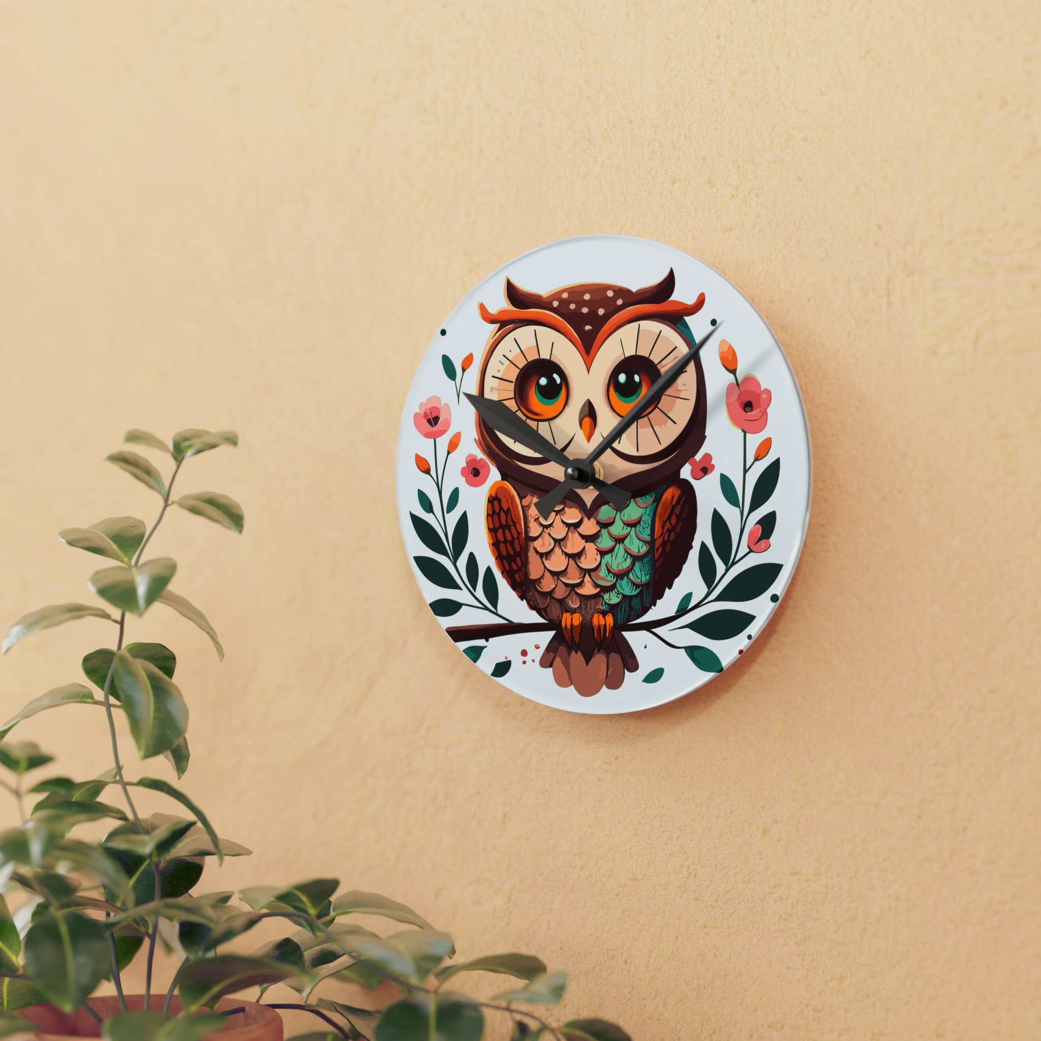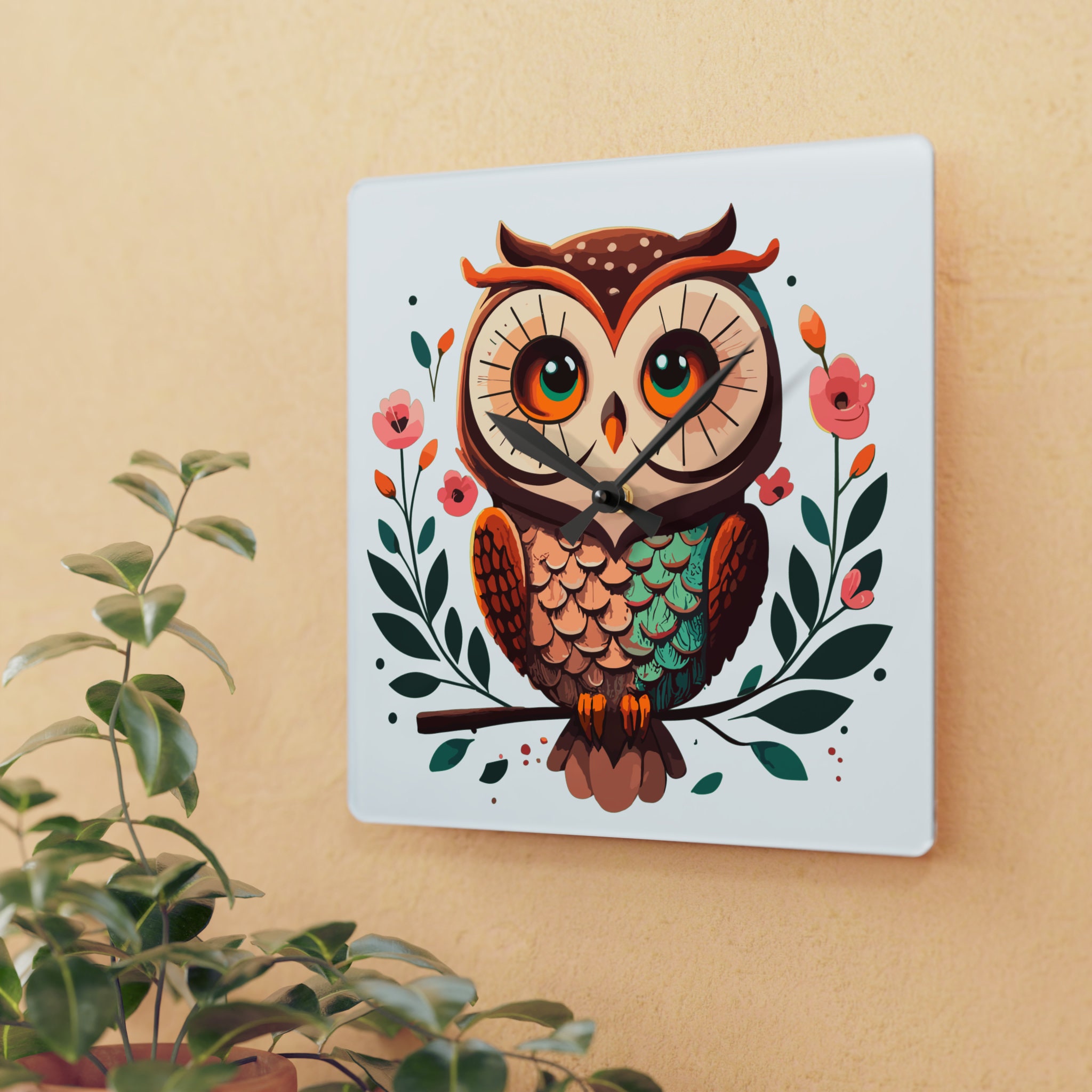 Introducing our Cutest Colorful Owl Clock, the perfect addition to any nursery room or kids bedroom. Made from durable acrylic, this wall clock not only adds a touch of charm to the space, but also teaches your little ones how to tell time. The vibrant colors and adorable owl design make this clock a delightful piece of decoration. It's also a great gift for owl lovers of all ages. Enhance your child's room with this cute owl clock and watch their imagination soar!