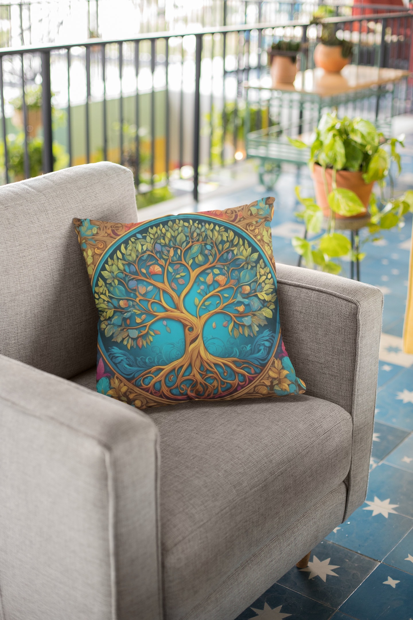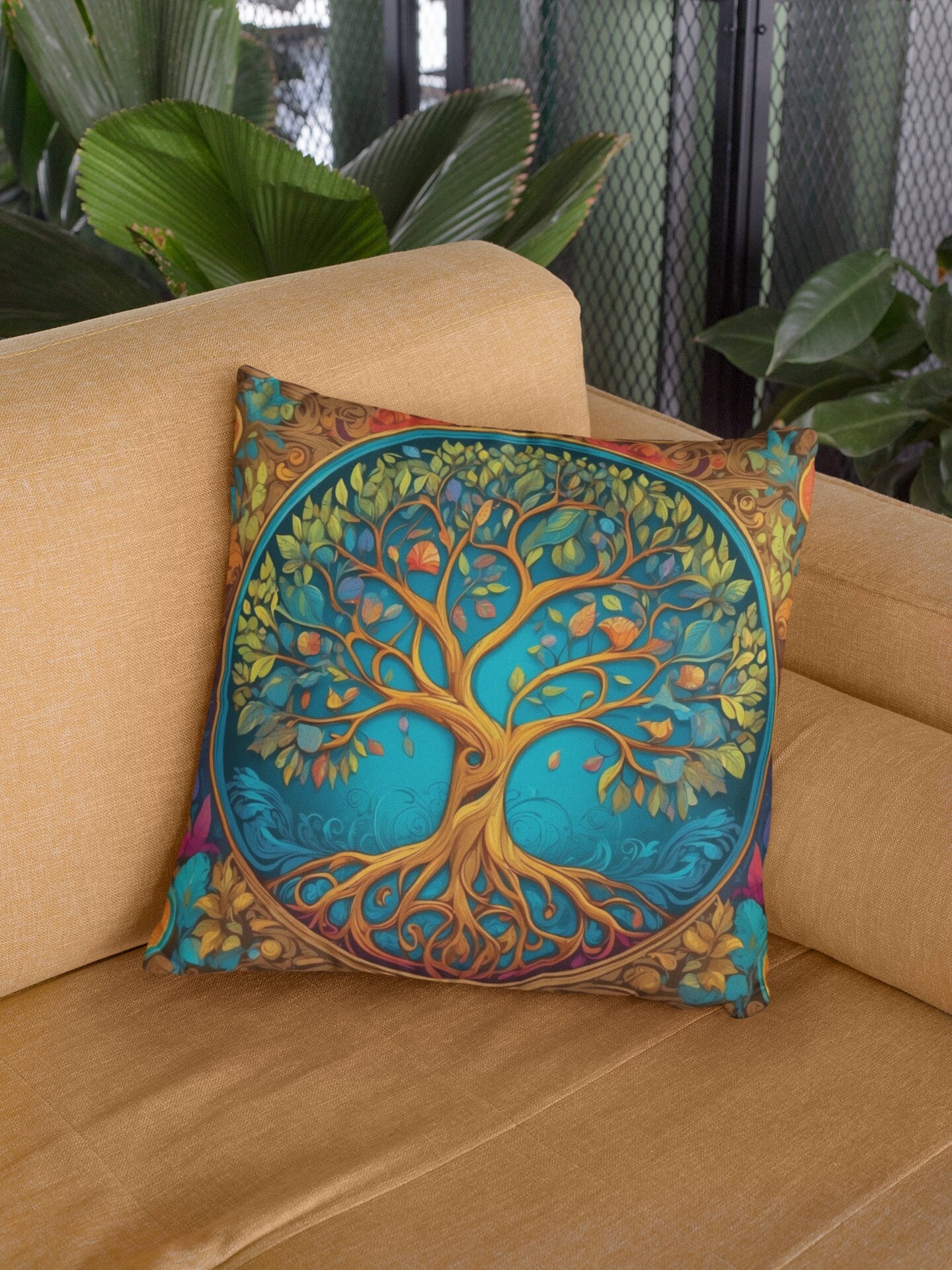 Elevate your home decor with the Tree of Life Spun Polyester Pillow. Featuring a nature-inspired design, this square cushion is the perfect accent for your living room.