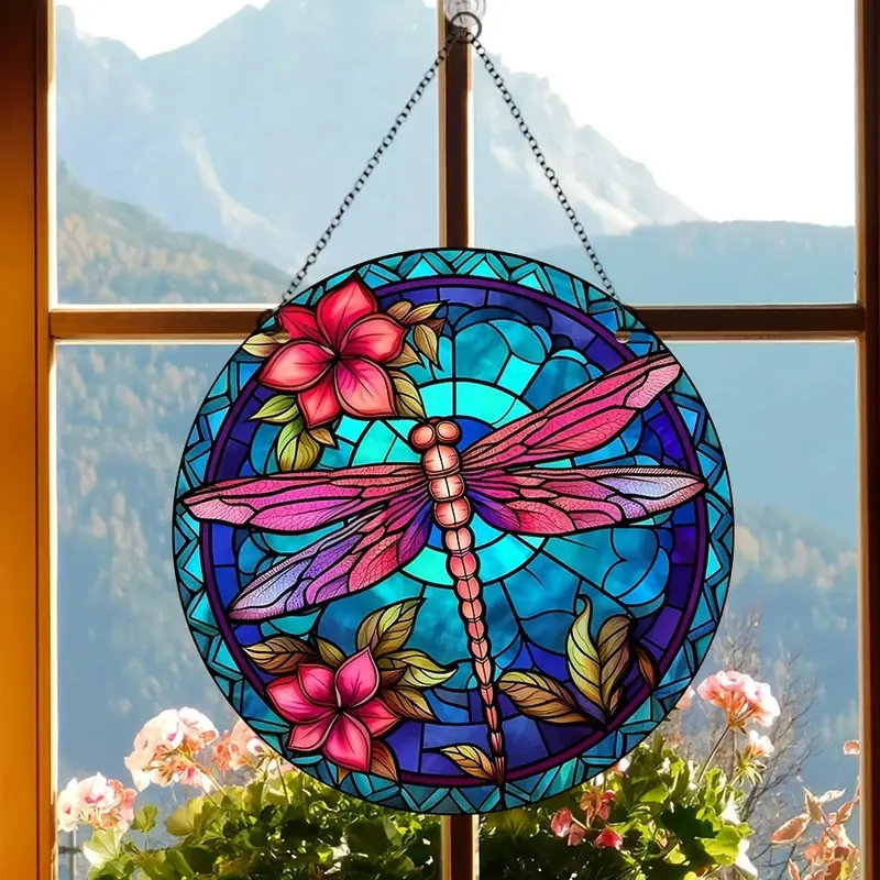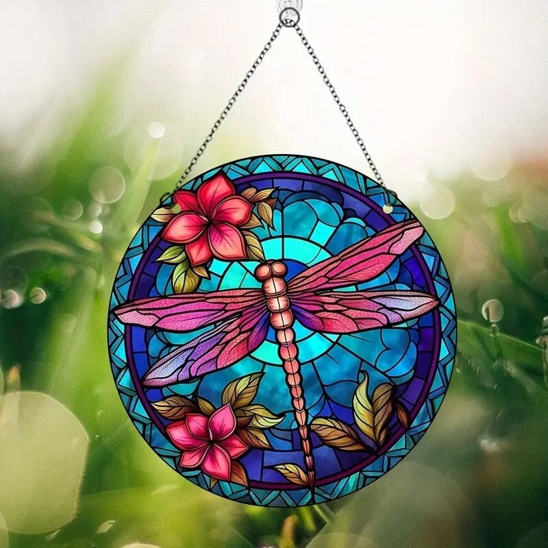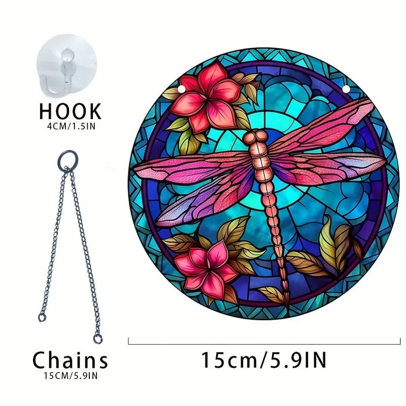 Crafted with exquisite detail, this Beautiful Red Acrylic Dragonfly Suncatcher is a stunning addition to any space. Measuring 5.9 inches round, this wall decoration dazzles with its vibrant red hues, adding a touch of whimsy and charm wherever it is placed.